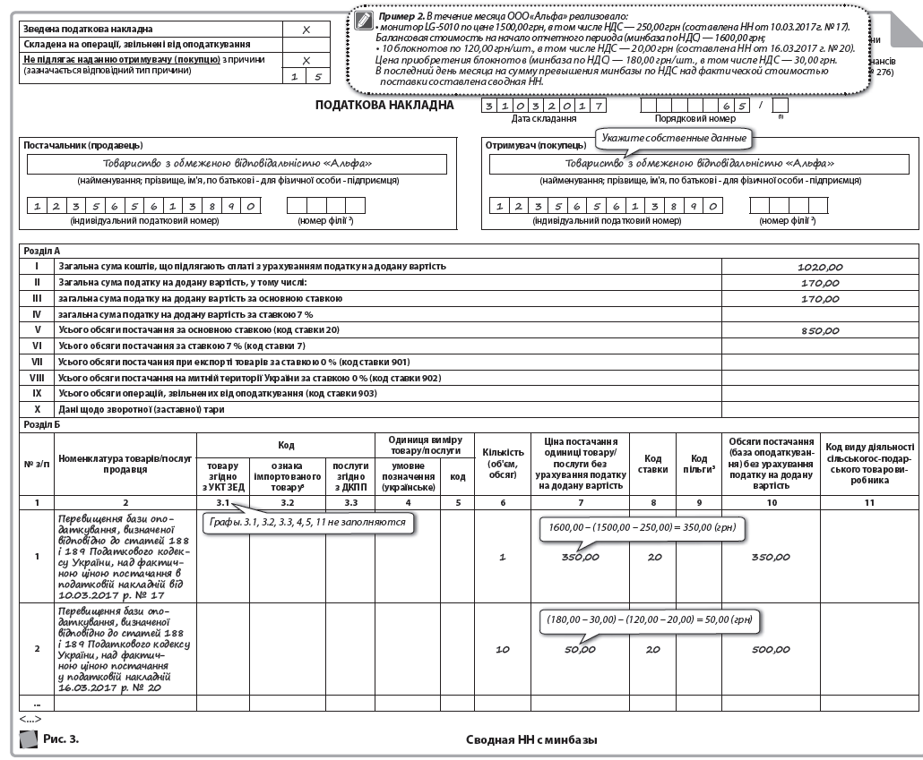 Сводные и «обычные» НН оформлены на компенсирующие НО на основании пп. 198.5, 199.1 НКУ (п. 11 Порядка № 13071) Порядок заполнения налоговой накладной, утвержденный приказом МФУ от 31.12.2015 г. № 1307.