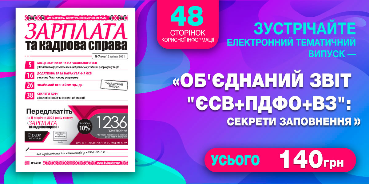 Ви маєте чудову можливість придбати супер-номер газети «Зарплата та кадрова справа», який допоможе заповнити швидко та без помилок новий об’єднаний звіт з ЄСВ, ПДФО та ВЗ.