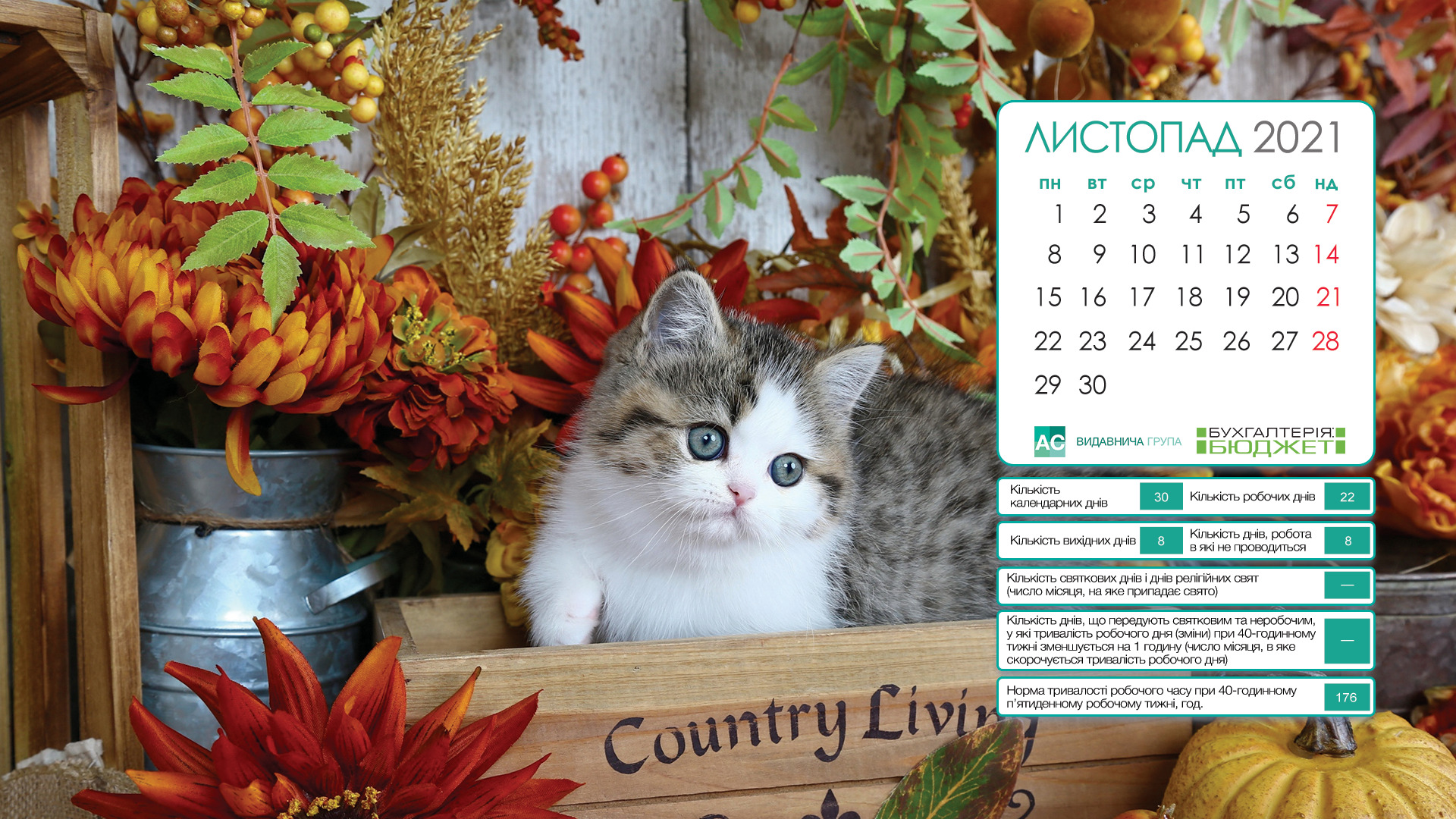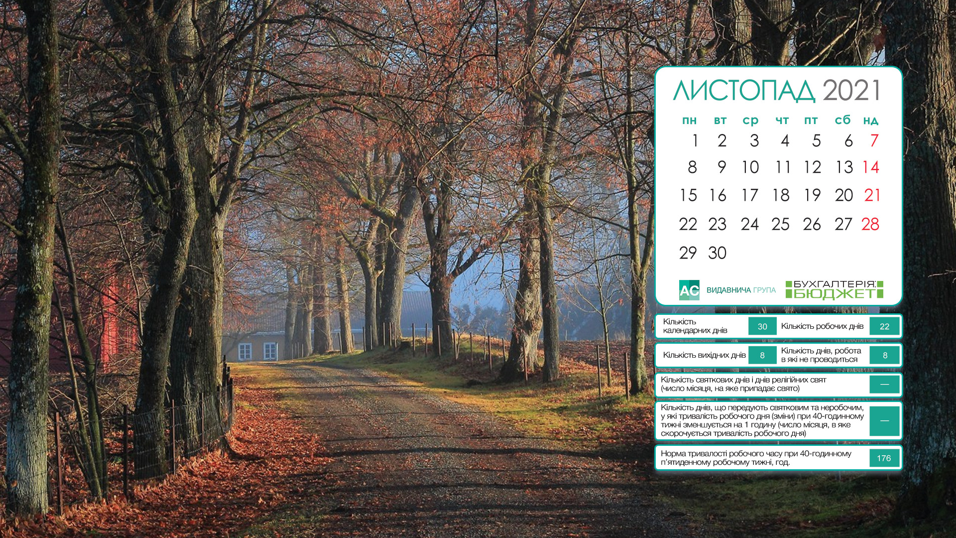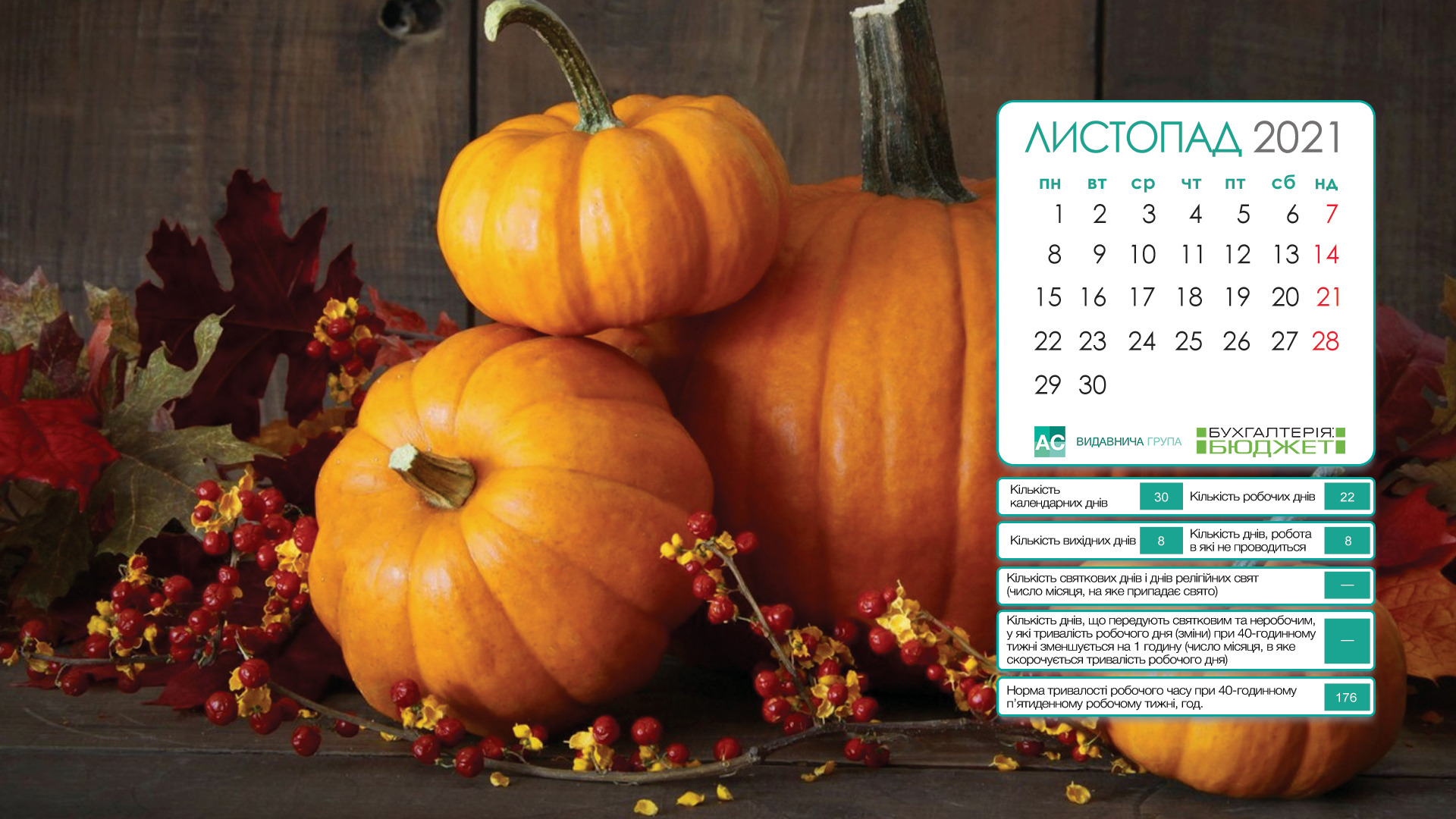 Завантажуйте красиві та корисні шпалери для робочого столу з календарем на листопад.