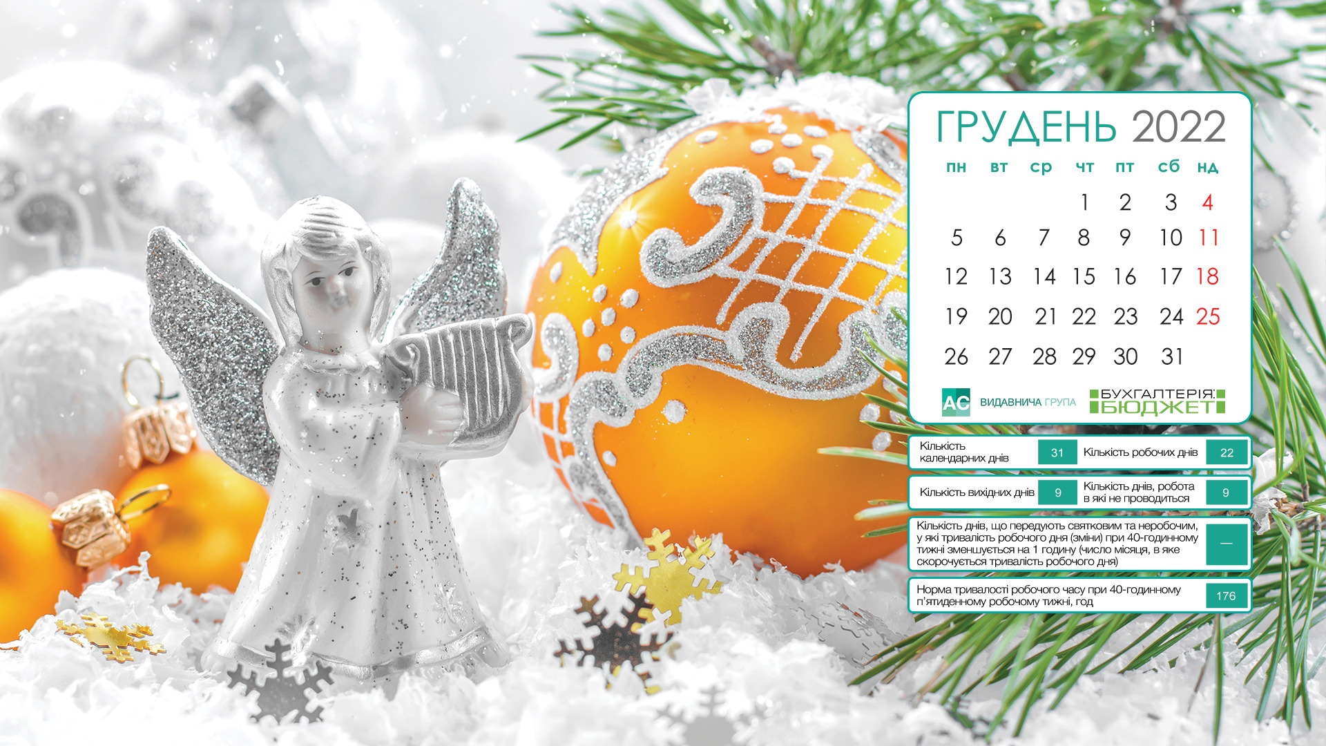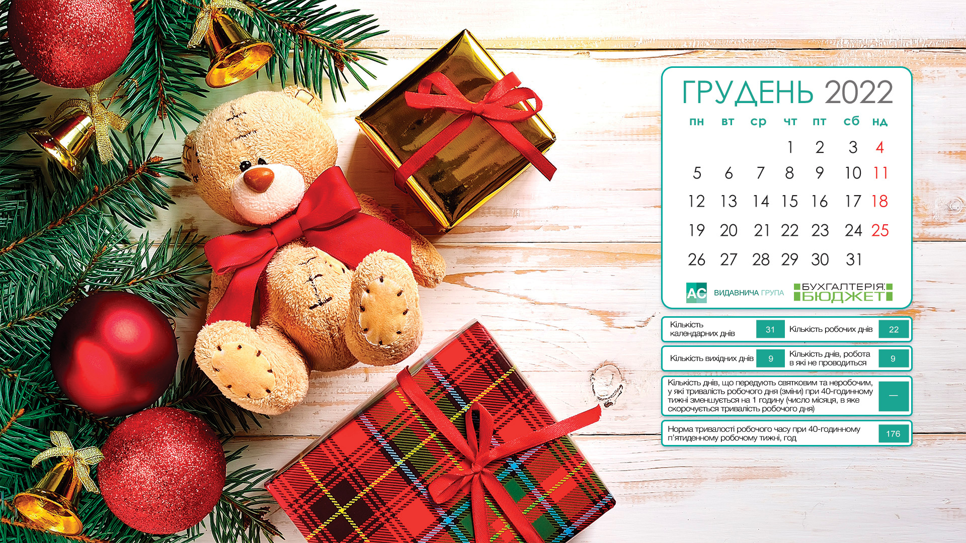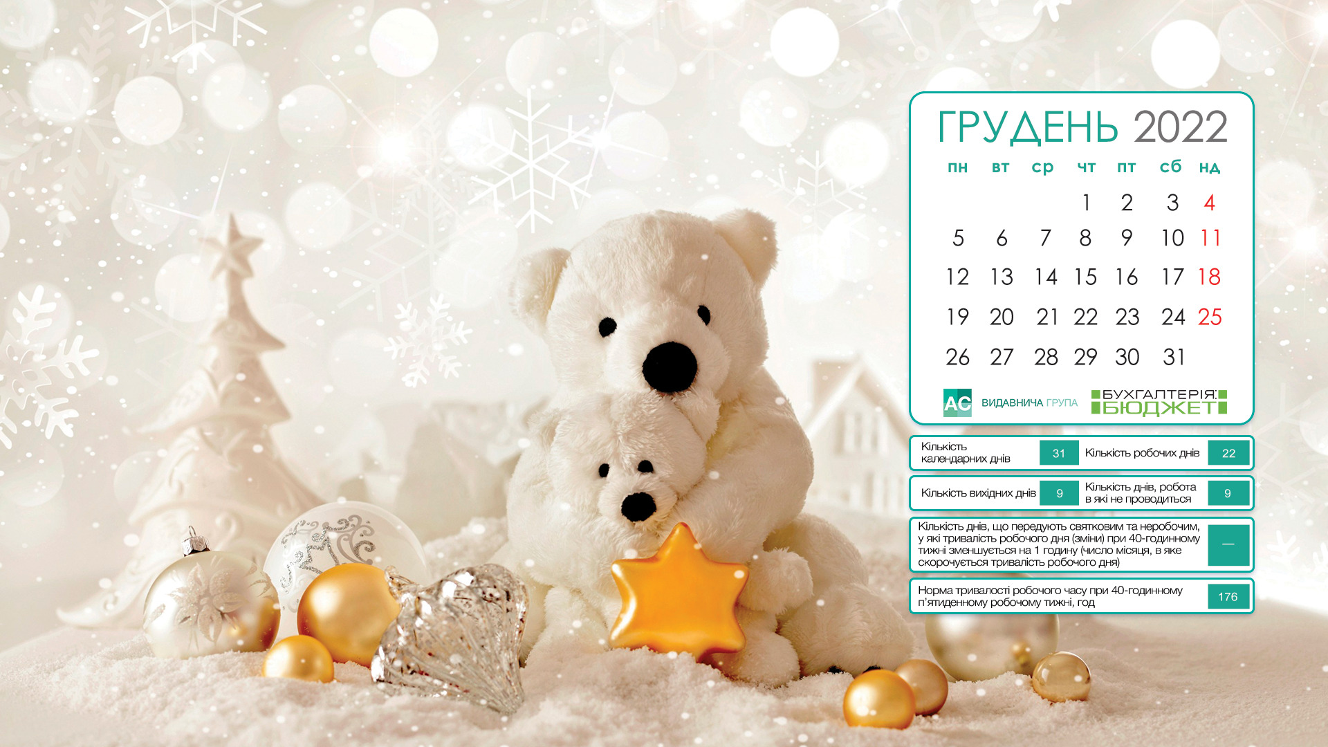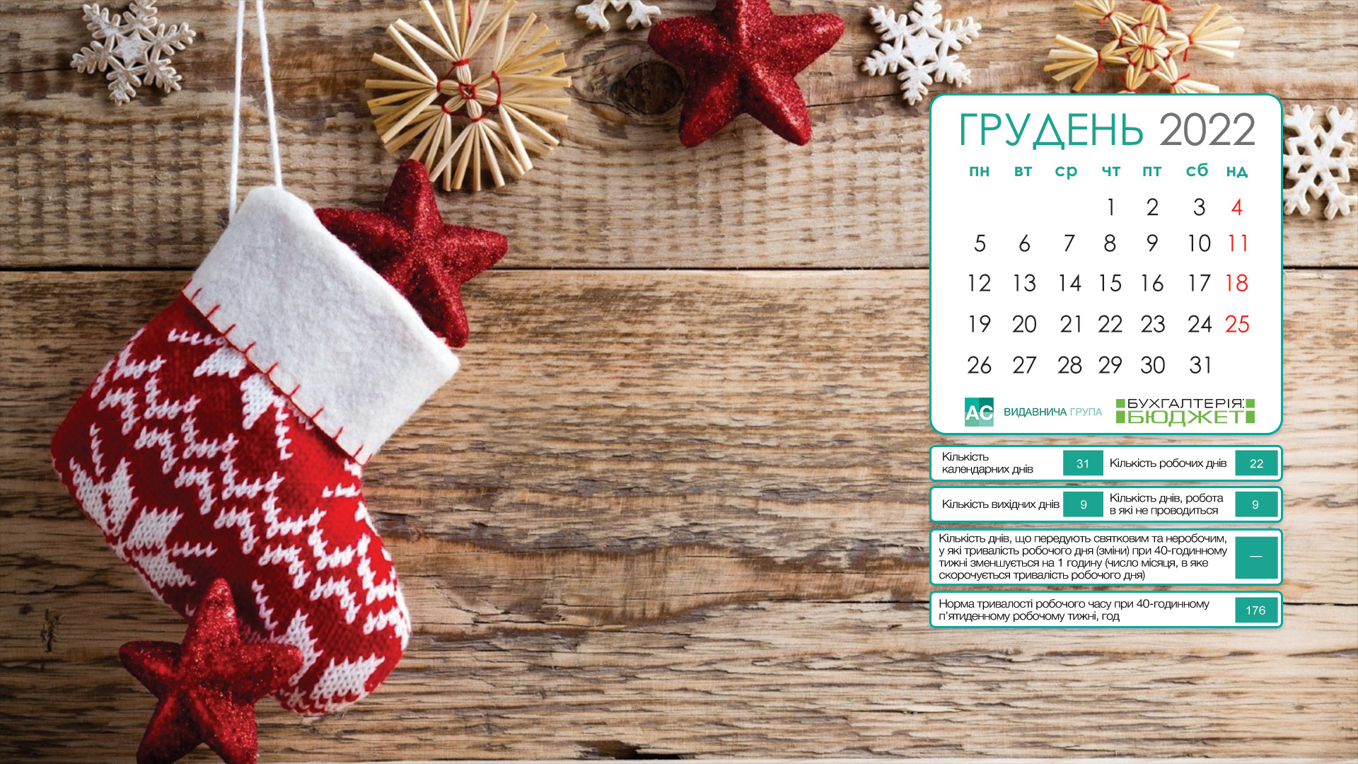 Шпалери  для робочого столу з календарем на грудень 2022 року.